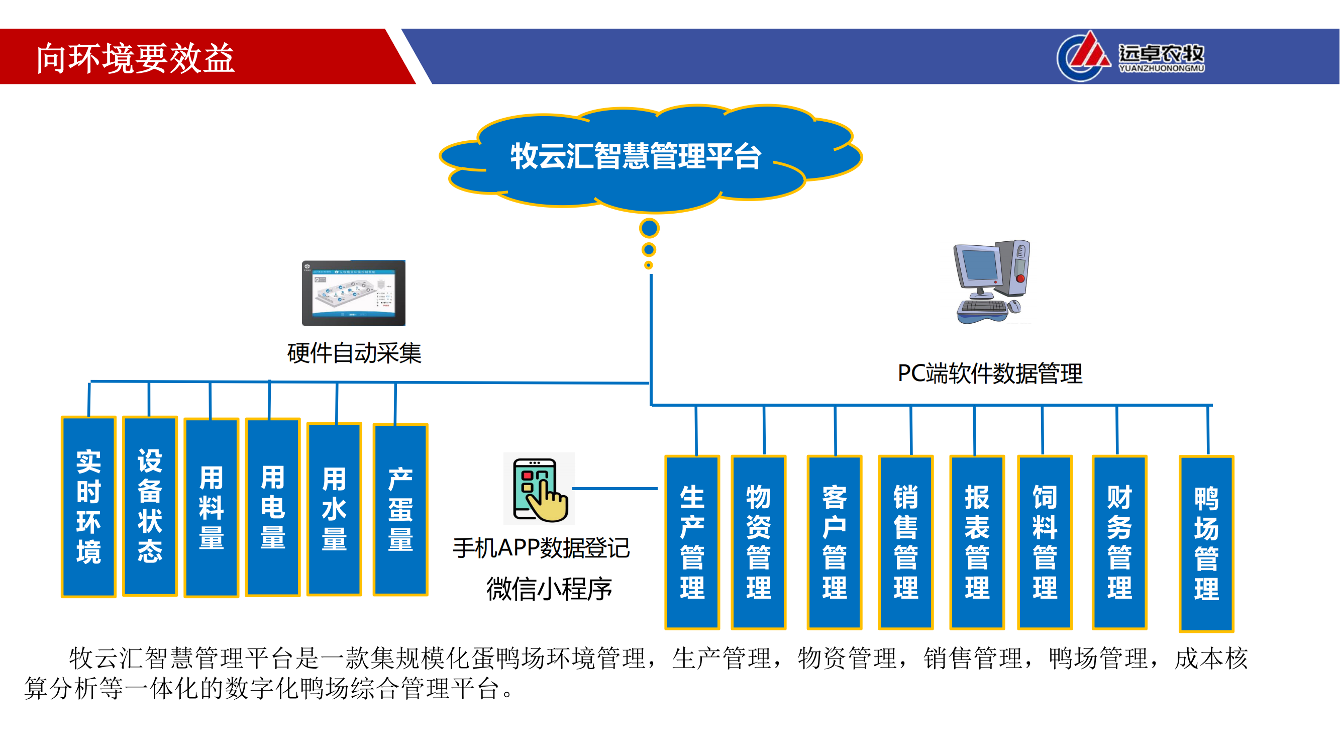 将人工智能、物联网(IOT)、大数据分析等新一代信息技术进行整合,通过可视化的管理方式,全面的生产数据统计分析,反哺客户优化管理决策,生成降本增效建议。结合数字化、物联网,让养殖场生产工作更加方便、快捷,节省人力物力。