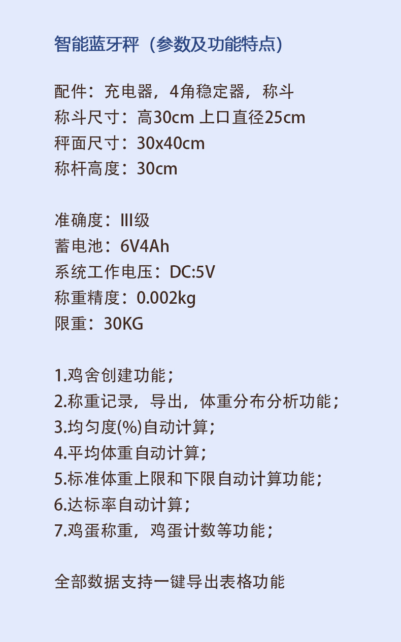在蛋鸡规模化养殖趋势的背景下,智能蓝牙秤的实用价值尤为凸显。其坚固耐用的机身设计适配养殖场复杂环境,易于清洁维护;操作流程简单直观,无需专业培训即可上手。智能蓝牙秤不仅解决了传统称重的效率与精度难题,更将单一的称重工具升级为养殖精细化管理的 “智慧大脑”,推动蛋鸡养殖业从 “经验驱动” 向 “数据驱动” 转型,为行业高质量发展注入了强劲动力。艾牧智能也正以“硬件+软件+数据服务”的一体化解决方案,不断用科技推动蛋鸡生产力的发展,用科技创造美好生活。