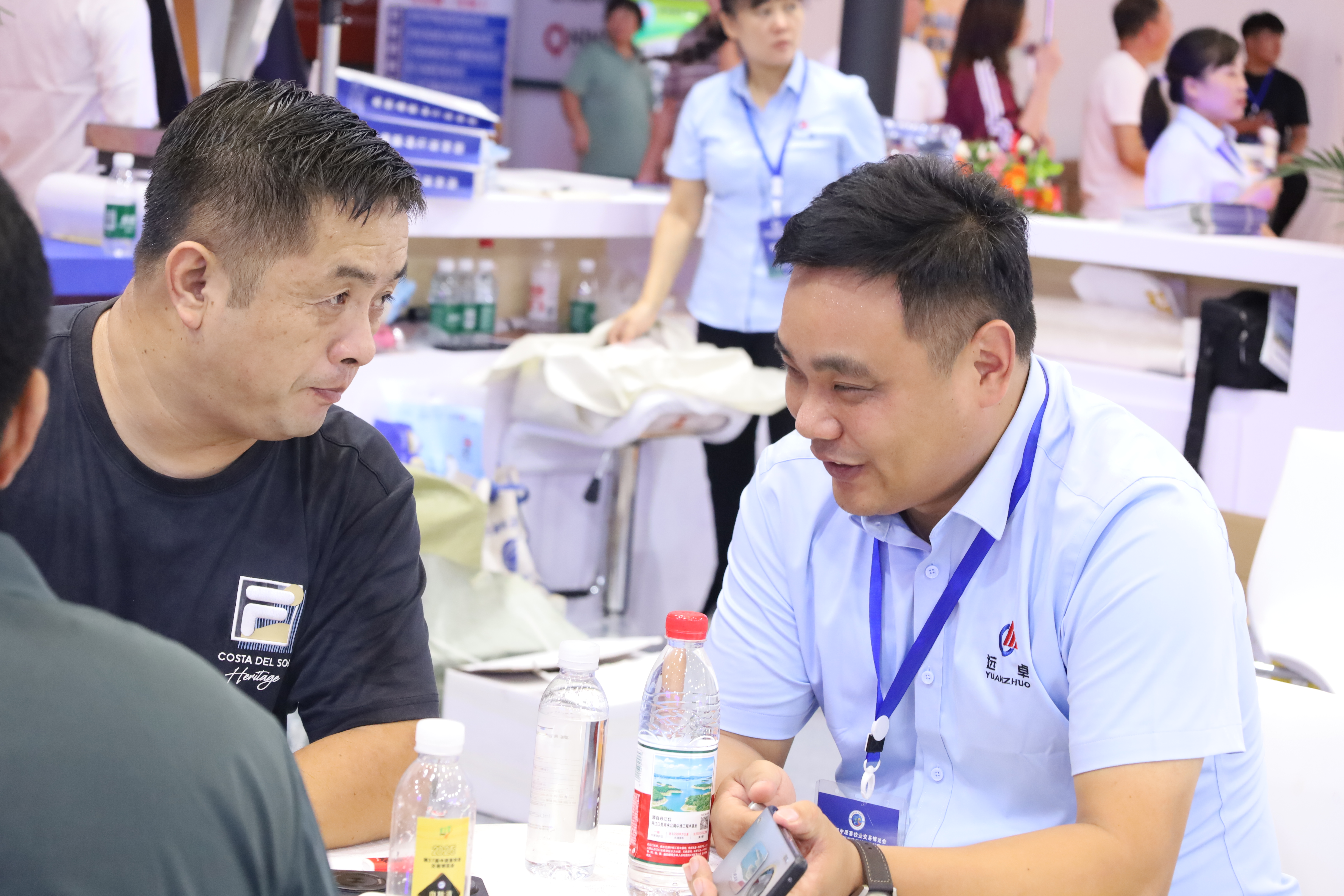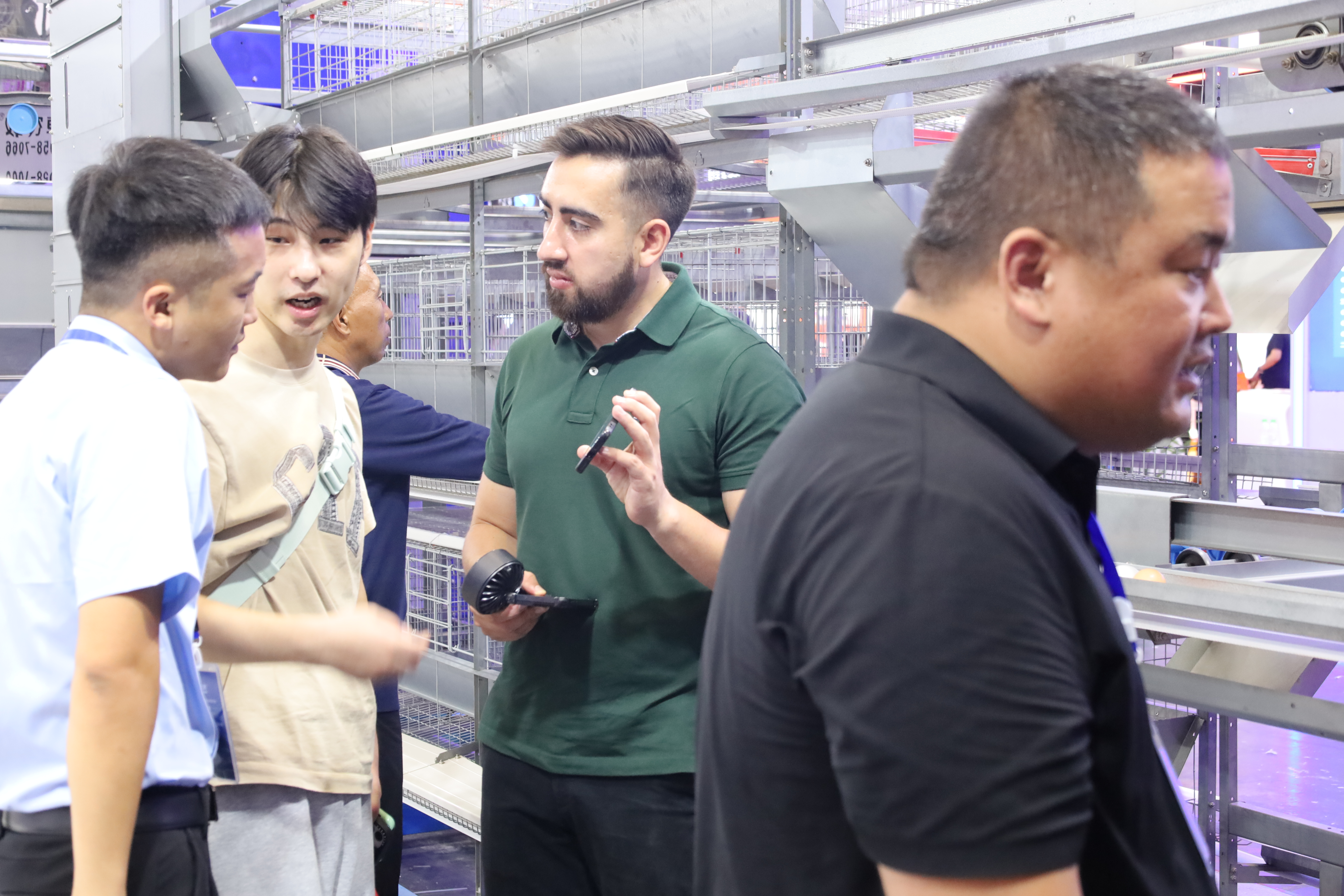 展会期间,河南省家禽业协会会长李鹏飞、秘书长睢富根、副秘书长段清长一行专程莅临远卓农牧展位,深入了解公司参展产品与发展情况。现场,远卓销售总监丁政伟详细介绍了本次展出的重点产品,从技术原理到实际应用场景,全面展现了公司在养殖设备创新上的硬实力。领导们对远卓近年来在设备研发、助力养殖升级方面取得的成绩给予高度肯定,认为公司产品精准契合当前家禽养殖规模化、智能化、绿色化的发展需求。